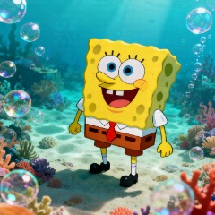 In a bright blue underwater world lives a cheerful and optimistic little sponge. His square, yellow body glows as if it’s been kissed by sunlight, dotted with tiny holes that give him a soft, porous look. He always wears a crisp white shirt, a red tie, and brown square pants, with shiny black shoes on his feet.